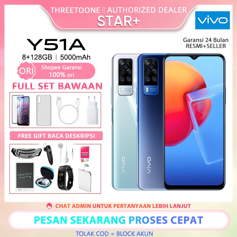 Harga baru untuk Vivo Y51 dan Y20S merupakan program cashback sebesar Rp 200 ribu untuk setiap pembelian produk tersebut. Saat ini brand smartphone asal Tiongkok tersebut sangat menarik perhatian publik tanah air dengan berbagai macam type smartphone terbaru mereka yang pastinya lebih keren dan lebih canggih. VIVO Y51 8 128 GARANSI RESMI Rp3089000 5 Terjual 1.