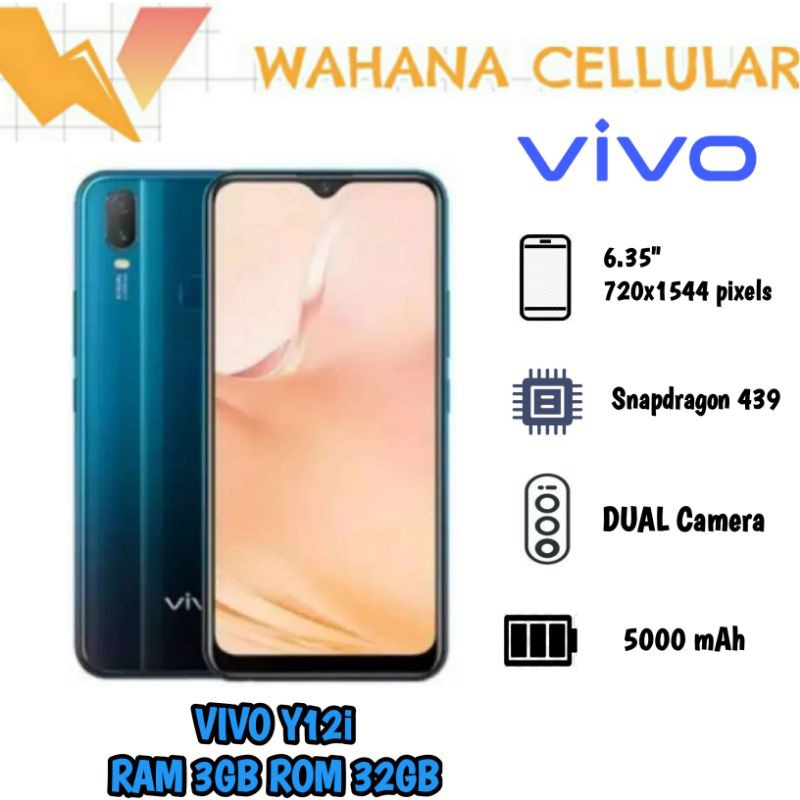 SMARTPHONE VIVO Y12I 2007 MINERAL BLUE 3GB32GB. Vivo Y12i yang memiliki RAM 3GB dan penyimpanan internal 32GB ini harganya Rp. Spesifikasi Lengkap Vivo Y12i Vivo Y12i ini merupakan versi downgrade dari seri Y12 yang telah mengalami pemangkasan jumlah kamera dimana seri y12i ini hanya mengandalkan dual kamera belakang.